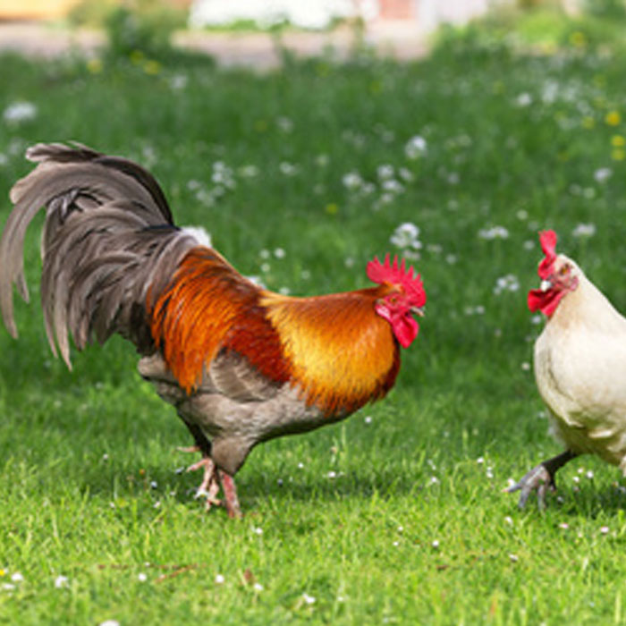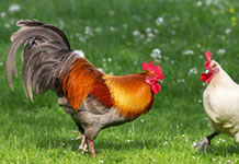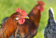 Nicht ein Leben unter Hennen im Stall, sondern in einer Herde, angeführt von einem Hahn.Wechselnder Auslauf