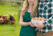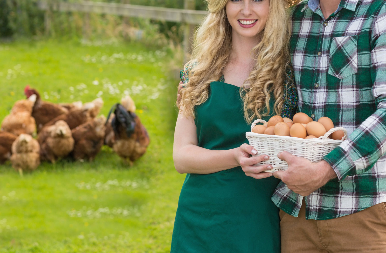 Als Dank für die guten Bedingungen eines Mobilstalls legen die Hühner tolle Eier.Leben in einer Herde